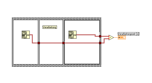 da musst du in den DATAFLOW noch zwei Zeitfunktionen (TickCount) einfügen, einmal vor dem "error in" und einmal nach der "Output"-Funktion und dann die Differenz beider Angaben bilden.
