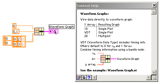 Wenn du bei einem Waveform-Graphen in der x-Achse einen anderen Punkt-Abstand als "1" haben willst, dann musst du das auch entsprechend programmieren, und nicht einfach ein 2D-Array deiner Daten in den Graphen schieben. (-> s. hierzu z.B. Hilfe zum Waveform-Graphen).