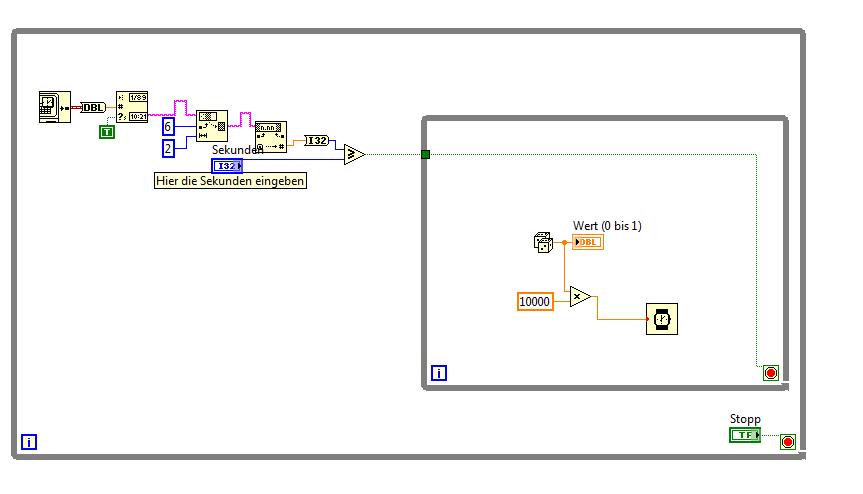 - Es gibt ein ExpressVI "ElapsedTime", das man hier verwenden könnte (das ich mal ExpressVIs empfehlen würde... Big Grin)