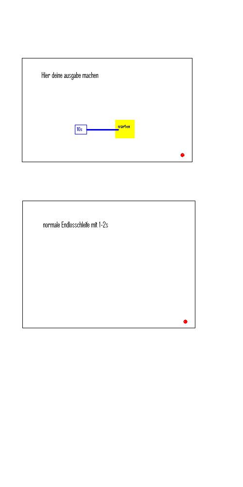 Hab ich schon versucht ...... ich bin in einer Endlosschleife die sich alle 20ms<t<500ms wiederholt und in diese Endlosschleife hab ich dann ne Zeitschleife mit der Periodendauer von 10s eingebaut --> das Problem dabei ist das die schleife 1 mal pro Endlosschleifendurchlauf ausgeführt werden muss, sodass sie solang wartet. D.h. wiederrum das sich die Endlosschleife der Periodendauer der 10s schleife anpasst.