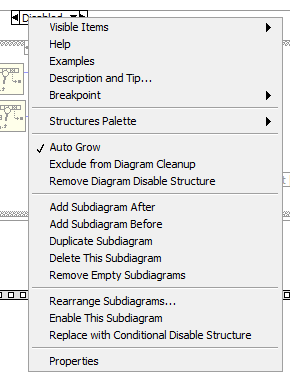 Nun zum Aktivieren der "Disable Structure": Der fast wichtigste Maus-Button in LabVIEW ist der rechte, soll heißen: Rechtsklick...