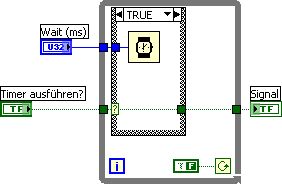 Für den einfachen Fall hab ich dir mal ein SubVi angehängt. Startet mit einem Boolean und gibt dir verzögert das Signal aus. Aber ich fürchte, das wird dir nicht genügen (ist ja wirklich trivial eigentlich, da wärst du sicher selbst drauf gekommen).