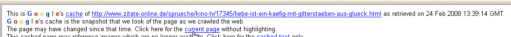 Mach ich mich also selbst auf die Suche nach dem Spruch im Internet - zur Verifizierung. Und siehe da ich finde den Spruch. Hat zwar ein Weilchen gedauert. Aber immerhin.