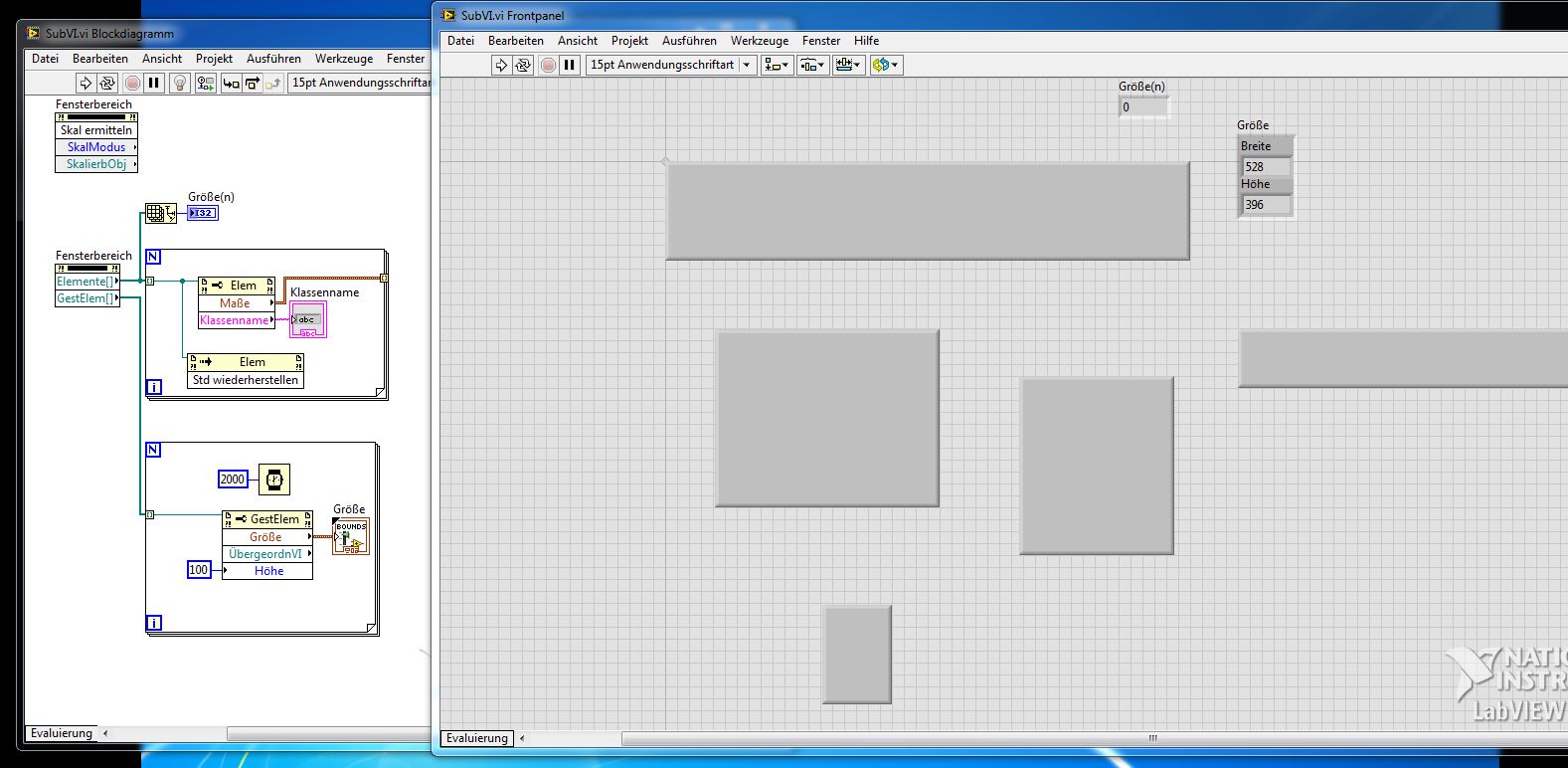 Mit dem Eigenschaftsknoten (auf Fensterbereich gesetzt), kann ich unter GestElem[] auf die Referenzen der verschiedenen Gestaltungselemente zugreifen, um damit z.B. die aktuelle Größe auslesen oder setzen zu können.