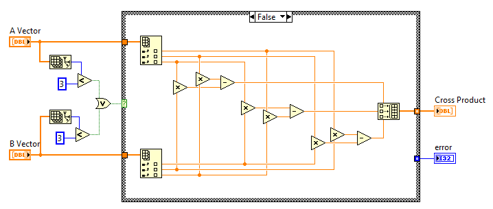 Für das Vektorprodukt usw. gibt es VIs unter Mathematik/Geometrie. Das läßt sich sogar öffnen: