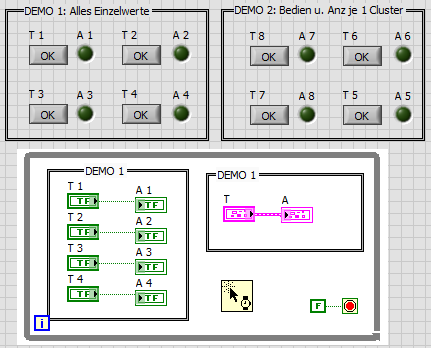 (29.08.2012 08:09 )Lucki schrieb: Man kann ja dann im BD die Bedien- und "Anzeige"-elemente nicht mehr als einen Clusterwert behandeln, sondern muß die Elemente zum Lesen/Beschreiben trennen.