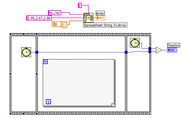 das mit dem array hab ich schon gemacht. also wenn ich von 30Mhz-230Mhz messe, dann hat der ja 200Mhz Messbereich. Dieser bereich ergeben 50000 Zeilen/Werte. Diese müssen einzeln in der Schleife abgearbeitet werden. dann werden diese in den array gepackt.