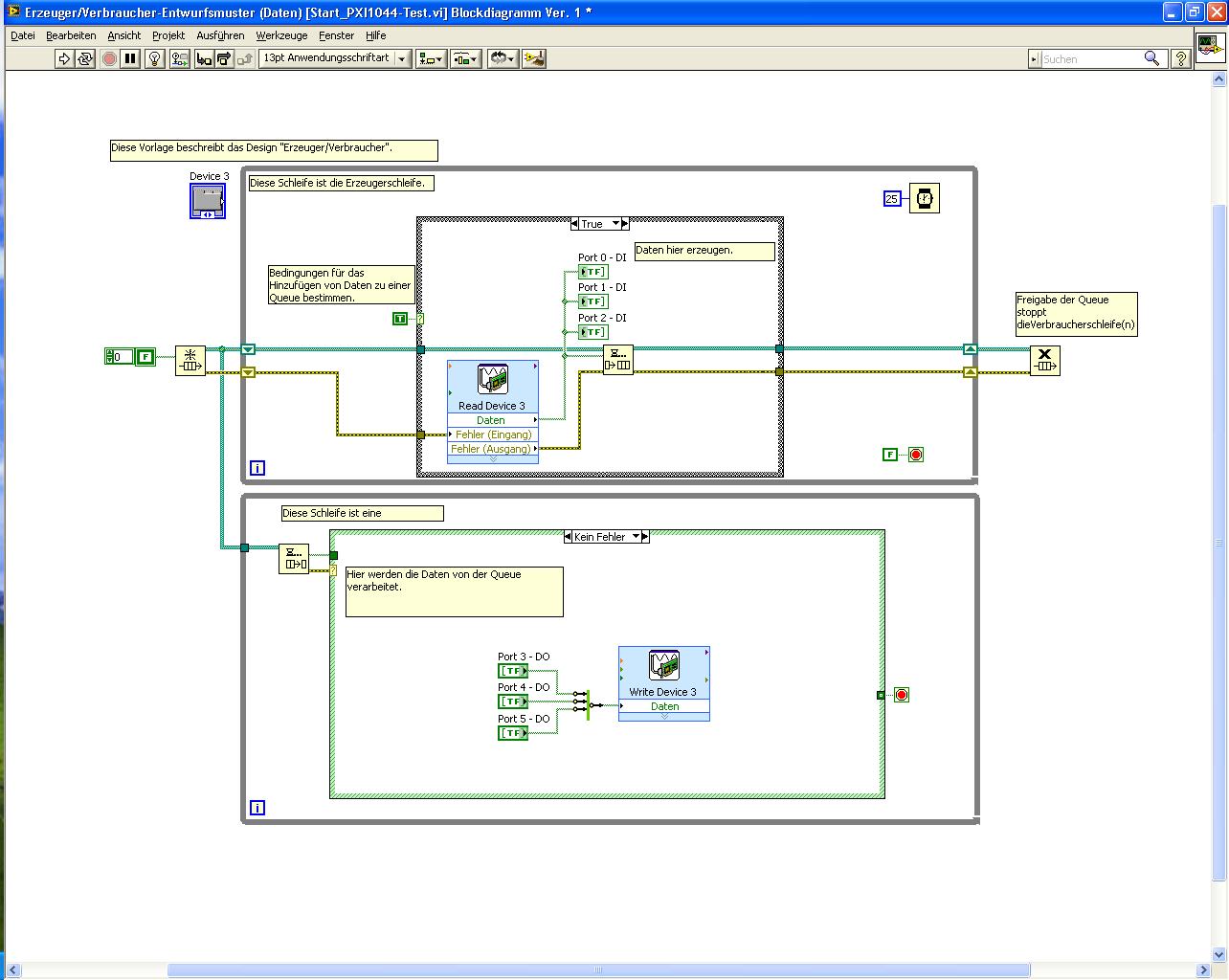 Dieses "Write Device3" hat das gleiche Icon wie die CreateTask-Funktion. Macht das VI auch das gleiche? Falls ja: so ist das schon besser (aber nicht gut Smile )! Jetzt fehlt noch die Funktion zu Beenden des Tasks - immer alle Referenzen schließen, die man so öffnet!