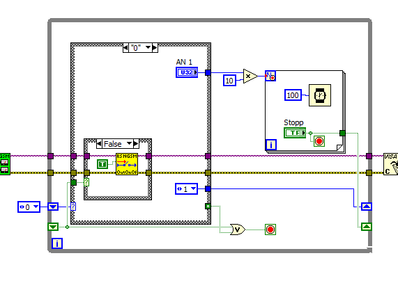 - Der Stopp-Button wird ausgelesen, die For-Loop beendet und der Stopp Button springt zurück auf False.