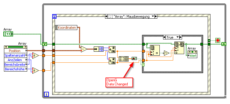da Du über jede Hilfe dankbar bist: Du kannst über die Event-Struktur die Koordinaten Deiner Mausklicks auslesen. Wenn Du dann aus den Koordinaten auf Deine Position im Array schließt, müsste das eigentlich gehen... Von NI gibt's da glaub ich ein Beispiel mit einem Einfachen Zeichenprogramm, wo das zumindest mit der Maus mal durchexerziert ist...