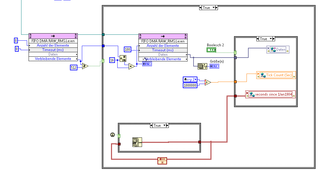 Bei 100kS/s und einer RT-VI Schleifendurchlaufzeit von etwa 50ms ergibt sich eine FIFO-Größe von min 40.000 Werten.