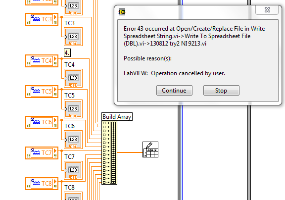 Zitat:file path is the path name of the file. If file path is empty (default) or is <Not A Path>, the VI displays a dialog box from which you can select a file. Error 43 occurs if you cancel the dialog box.