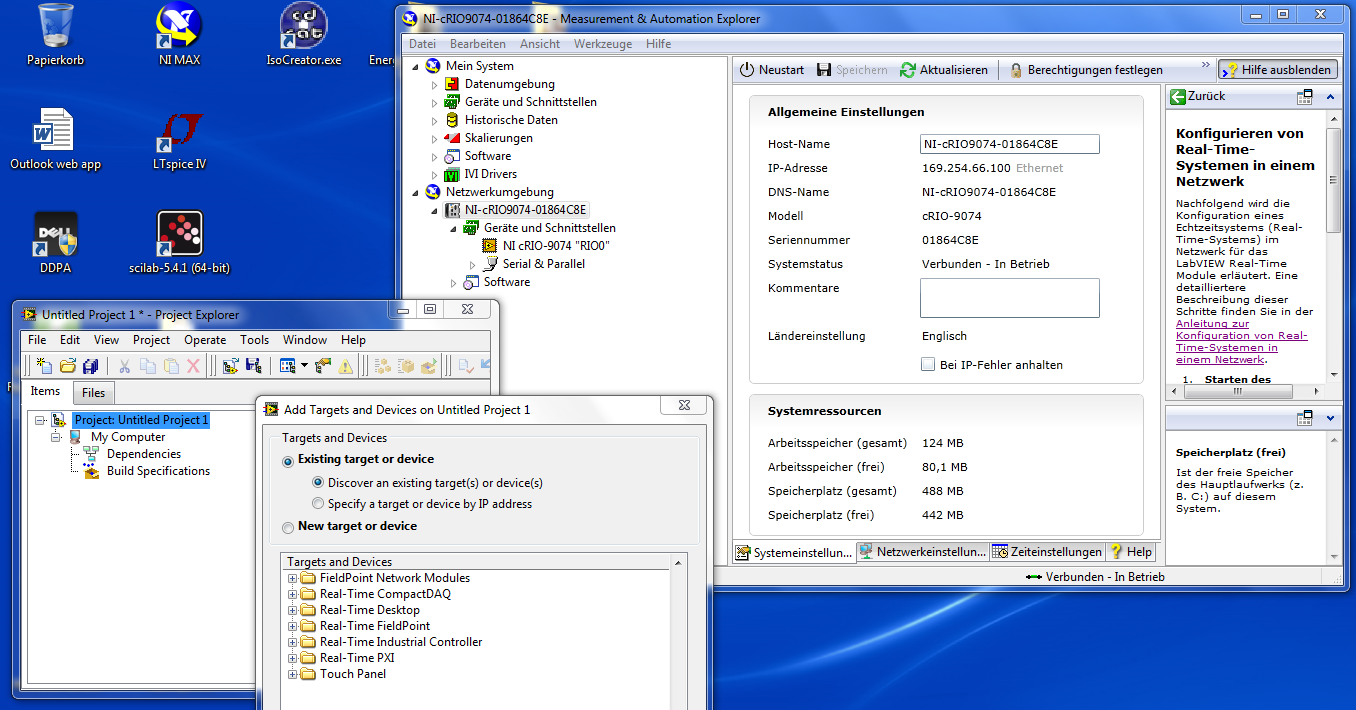 Hier der Screenshot von meinem LabVIEW-Laptop, mit "In Betrieb" befindlichem cRIO sowie funktionierender IP, siehe hinteres Fenster: