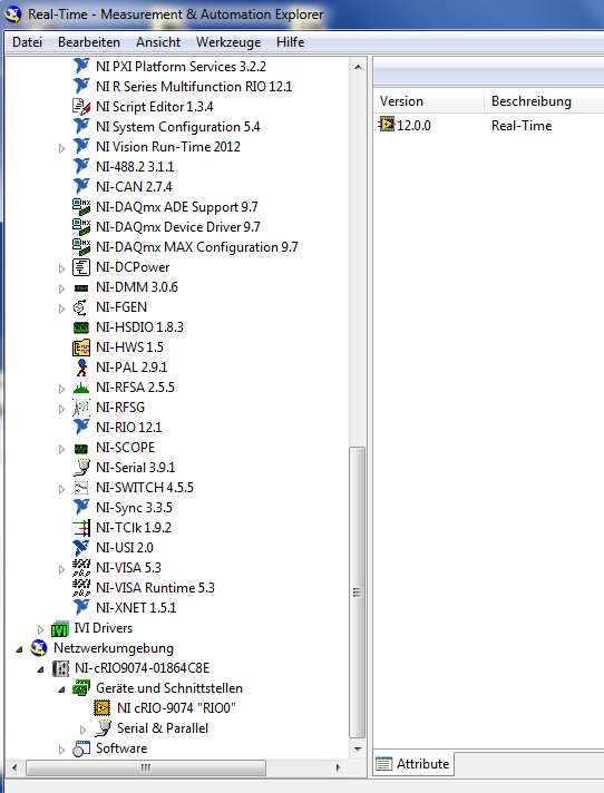 update: genial, das Aufspielen der alten Treiberversionen (NI Realtime cRIO 12.0.0) hat den gewünschten Erfolg gebracht! Yuhuu!! Jetzt nur noch das VI programmieren, hoffe damit dann schneller voranzukommen. Danke für Eure Hilfe bisher!
