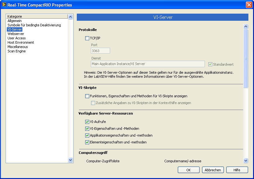 Im Moment bin ich noch am Testen des Ganzen. Ob jmd dies braucht, weiss ich nicht. Da ich mich mit dem cRIO noch nicht ganz auskenne (Feinheiten und so), habe die "nötigen" Einstellungen noch nicht gefunden (oder gesucht).