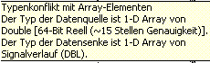 Außerdem habe ich noch das Problem, dass ich jetzt den Ausgang (dX/dt) nicht einfach an den Graf anschließen kann. Es erscheint die im Anhang beigefügte Meldung. Sowohl Datenquelle als auch -senke sind irgendwie 1-D Array DBL. Scheinbar aber doch was anderes...