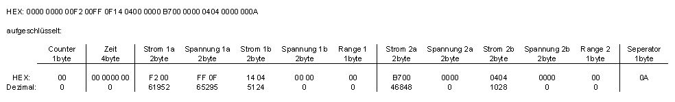 Die Counter und Zeit-Bytes werden für einen Messpunkt am Anfang der Zeile nur einmal mitgeschickt, da sie ja für alle Sensoren gleich sind.