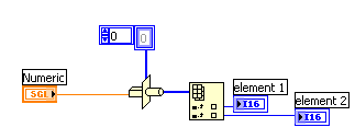 Datentyp der Numeric Konstante im Array auf I16 ändern (erreichbar über Kontext-Menü). Das kann auch vor Schritt 2 erfolgen.