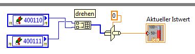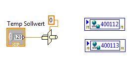 Hallo, ich hab im Studium ein LV-Projekt, und befasse mich deshalb zum ersten mal mit LV;)Deswegen habe ich auch eine sehr simple Frage, für die ich aber noch keine Lösung finde.. Es geht darum, dass eine Anlage über MODBUS angesteuert werden soll, diese hat dafür mehrere Variablen vorgesehen, welche aus 16 Bit Integern bestehn. Ein Wert jedoch muss so übertragen werden, dass er sozusagen auf 2 16 Bit-Blöcke verteilt ist. Umgekehrt geht es, weil uns ein Laboringenieur sehr gut geholfen hat und ein Beispiel programmiert hat (siehe erstes Bild)     . Ich muss es jetzt genau andersherum machen, also ein Bedienelement ist verbunden mit zwei Umgebungsvariablen (siehe Bild 2)     .