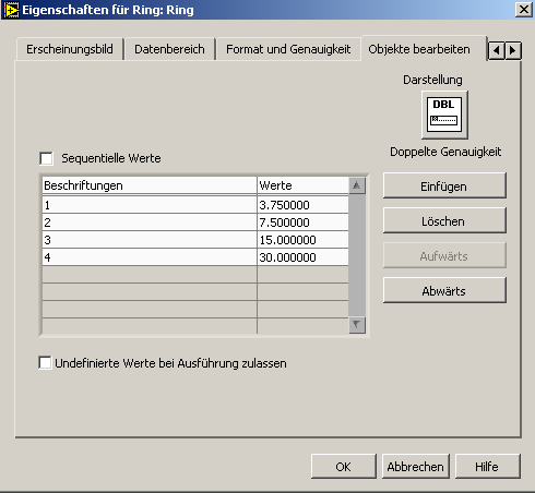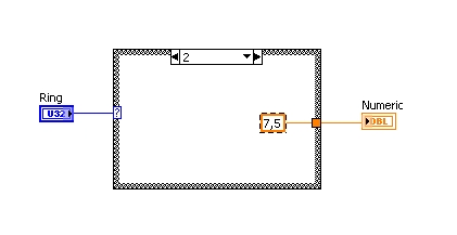 Ein VI braucht Du dafür nicht, denn exakt auf Deine Aufgabenstellung zugeschnitten gibt es dafür das Bedienelement "Ring". Dort "Eigenschaften" aufrufen, Tab "Objekte bearbeiten" wählen, Häkchen "Sequentielle Werte" entfernen, Darstellung (z.B DBL) wählen, Tabelle ausfüllen: