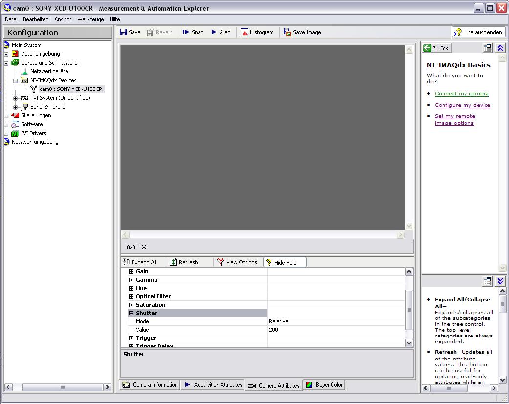 habe das gleiche vor. Im MAX erscheint der Shutter auch. Nur in LabVIEW nicht. Woran liegts? Was kann ich tun?