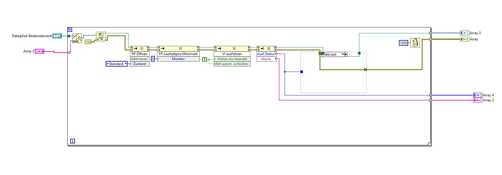 ja ganz sauber ist das echt nicht, mal geht es mal nicht. Die Frage jetzt wäre, wie kann ich den eigenständig laufende VI´s in ein Main VI einbinden? Das ist nämlich genau das was ich versuche. Notifire hab ich schon drin, auch mit Stop, aber wie bekomme ich die verlinkt? das die auch gestartet werden???