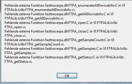 Allerdings hab ich jetzt die Entwicklungsumgebung auf den besagten Rechner installiert und es läuft da auch nicht. Wenn ich im "Knote zum Aufruf exteren Bibliotheken" den PFad zur DLL angebe, (wo sich auch liegt) dann sagt Labview "Fehler beim Laden von c:/User/..... ". Eine DLL-Initialisierungsroutine ist fehlgeschlagen.