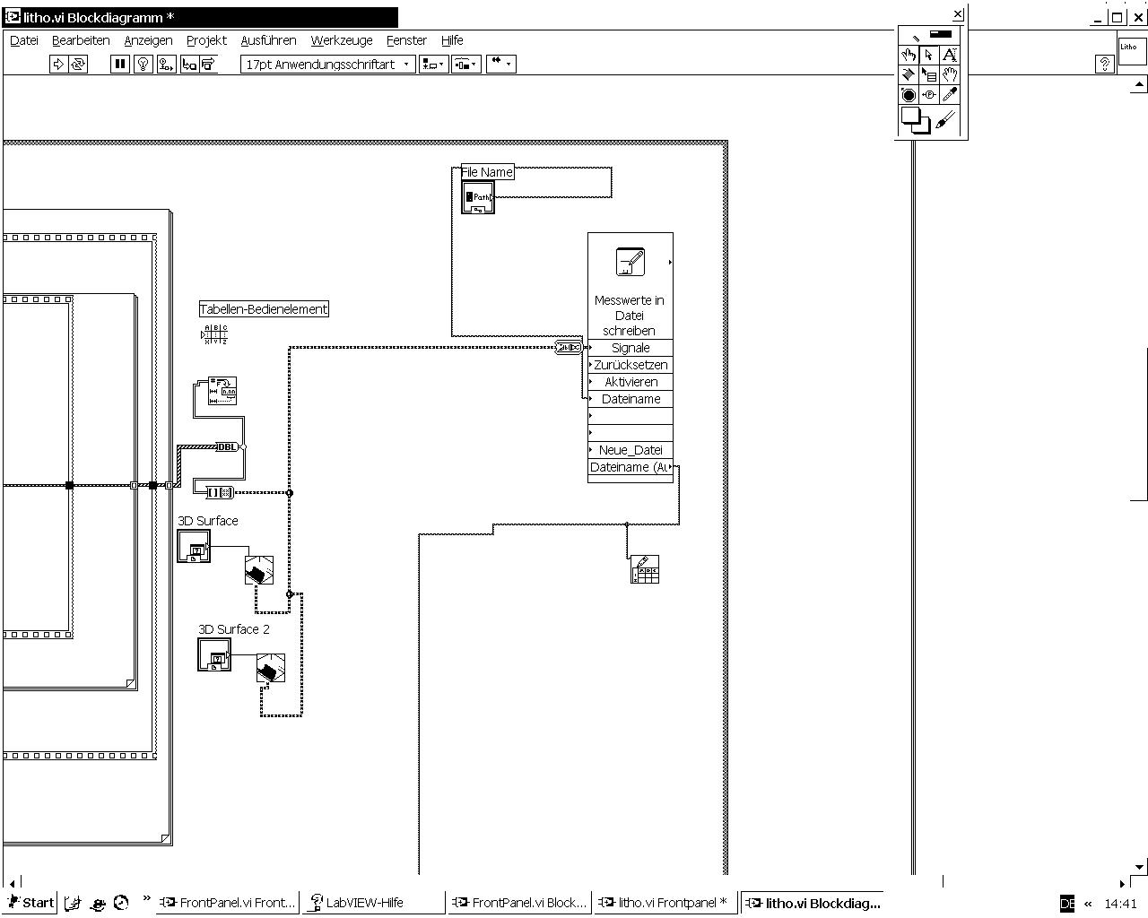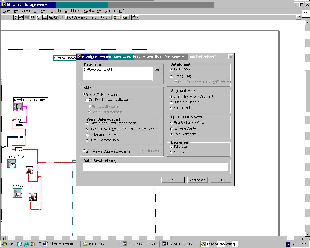 das express-vi "write measurement file", konnte ich nicht benutzen, da da laut knowledgebase auf http://www.ni.com dieses vi nur 6 stellen speichern, und ich da zuviele verluste hatte.