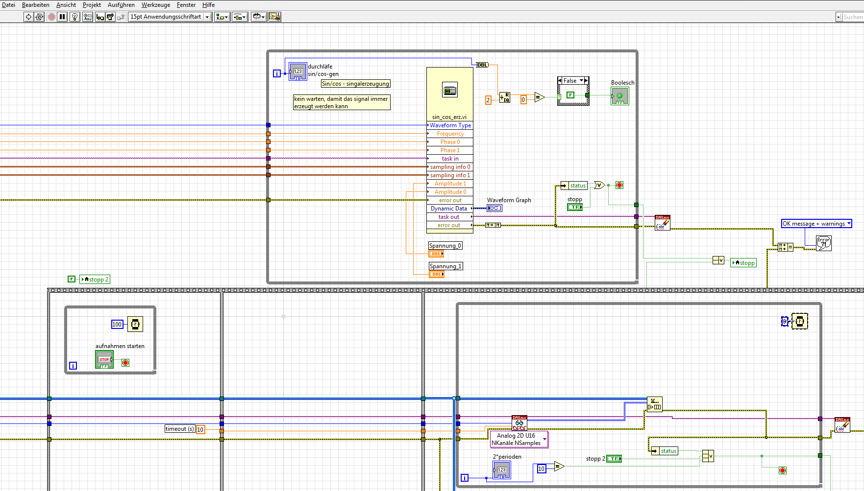 die Datenerfassung ist doch in einer Eventstruktur (in der "Filmrolle" im unteren Teil des Bildes) nur da ist ja noch das Problem, dass wenn ich den Button betätige, dass die Erfassung sofort beginnt und ich keinen Einfluss auf den genauen Startpunkt habe, der an einer definierten Stelle sein soll (Nulldurchgang des Erzeugersinus [in der oberen Schleife] )