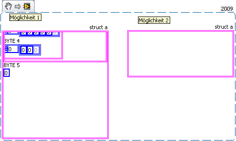 in LV auf dll union zugreifen (struct {union{array;struct{ };BYTE}) |