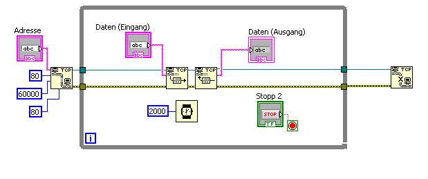 Labview bietet VIs für TCP, HTTP, und anderes. Ich muß wissen, wie ich die Kommunikation mit dem Gerät, welches vernetzt ist, aufnehmen kann. Per Browser funktioniert das ganz gut, nur muß dieses Gerät in den Programmablauf eingebunden werden.