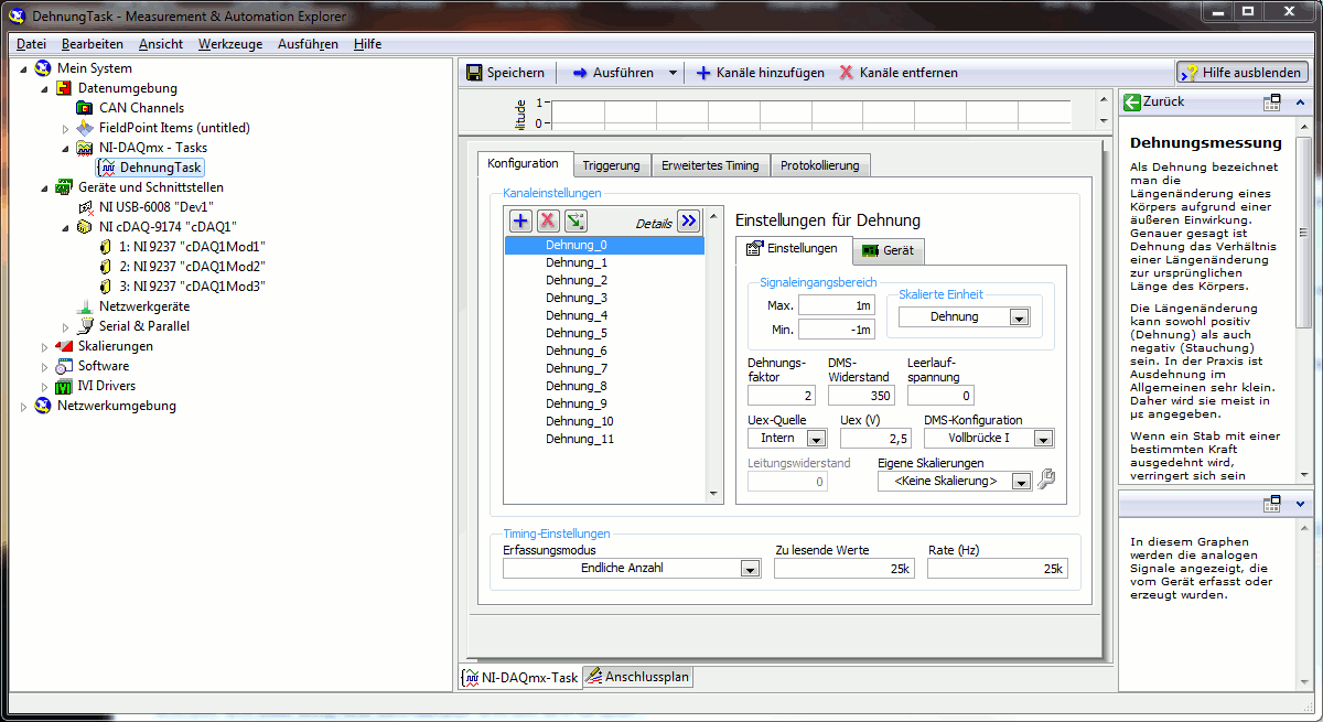 ich arbeite im Rahmen meiner Projektarbeit das erste Mal mit Labview 2011. Es werden 12 DMS-Vollbrücken an drei NI9237-Module angeschlossen.