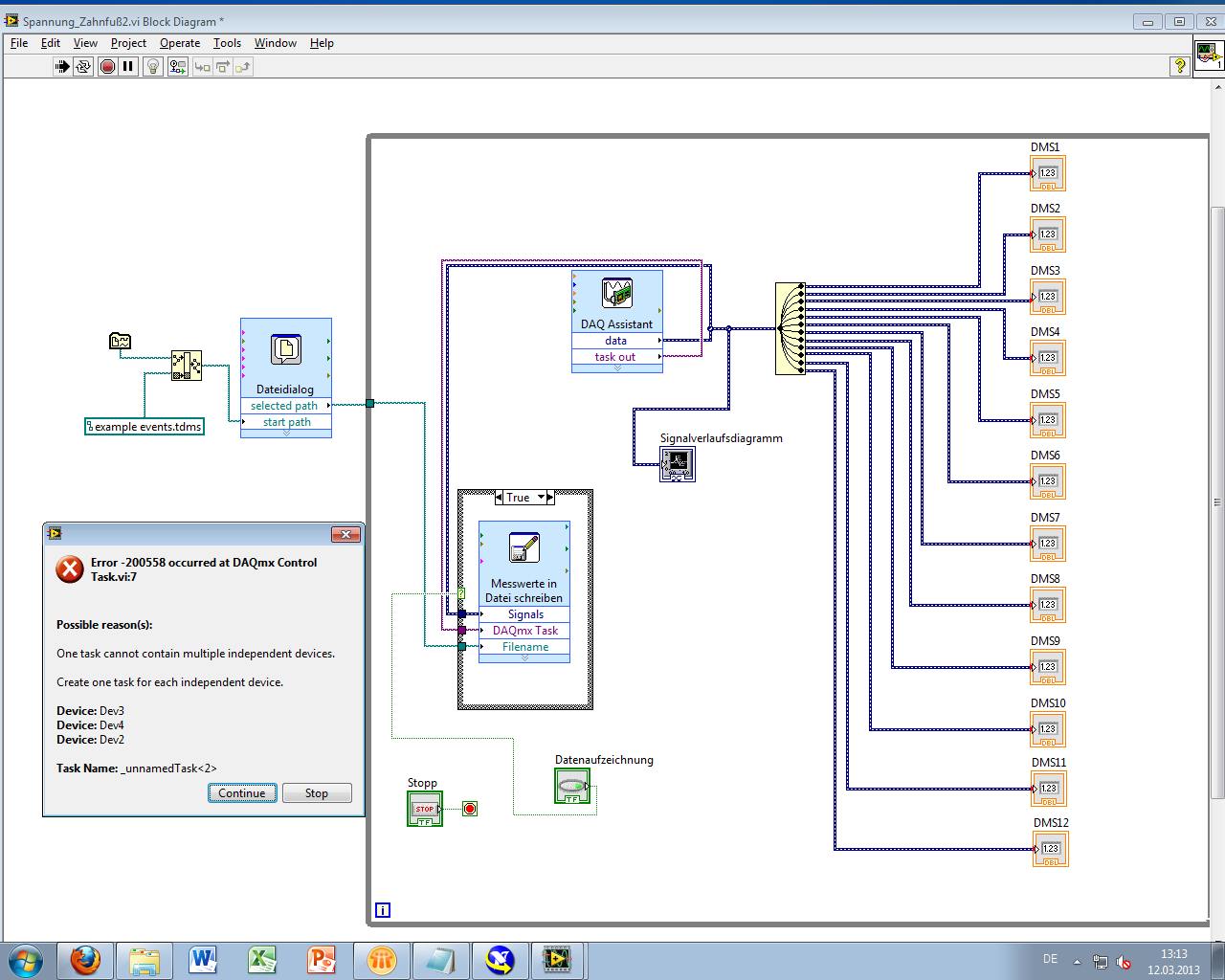 Soooo ich habe nun drei DAQ-Assisten eingefügt und es scheint zu funktionieren