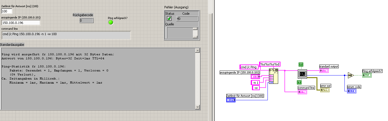 Ich habe mir mit Hilfe dieses Beitrages https://decibel.ni.com/content/docs/DOC-22841 ein VI für Netzwerk Ping erstellt.