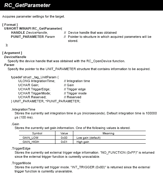 Das Struct kannst du ersetzen durch ein Array of U32 der Länge 2. Das erste Array-Element (Array[0]) ist dann der Wert IntegrationTime (Ob ULONG ein U32 oder ein U64 ist, ist mir gerade entfallen. Musst du halt selbst kucken). Das zweite Array-Element (Array[1]) kannst du mit einer entsprechenden Operation (Zahl teilen), die du in der Palette Numerisch/Datenmanipulation findest, in vier Bytes (UCHAR) aufteilen. Der Pointer PUNIT_PARAMETER wird dann als Typ U32, Zeiger auf Wert, übergeben. Leg an den Eingang des DLL-Knotens ein Array[2] an und an den korrespondierenden Ausgang auch. Im Ausgang müssen dann die Daten stehen, die nur noch "manuell umgetypt" werden müssen.