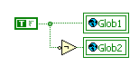 Der Knackpunkt bei deiner Methode ist die Verzweigung! Die Konstante liegt in einem Datenfluß - der sich dann aber teilt: in einen Datenfluß, der zu Glob1 führt, und in einen zweiten Datenfluß, der zum Inverter führt. Dann sind dann aber zwei Datenflüsse - und müssen als parallel abarbeitbar betrachtet werden. Und schon ist es das selbe Problem wie bei Christiann, bei dem es lediglich von vorne herein drei Datenflüsse sind (3.: Warten).