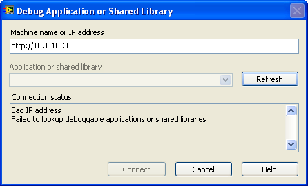 Versuchs doch erst mal lokal auf dem selben PC, dann auf einem auf dem selben SubNetz. Klingt vielleicht alles dumm aber im Moment weisst Du nicht ob es an der Konfiguration der LabVIEW IDE, der DebugApplikation oder dem Netzwerk liegt. Also versuche ich in so einem Fall erst so viele Unbekannten wie möglich zu eliminieren und mich dann in der Komplixität langsam an das eigentliche Problem heranzutasten.