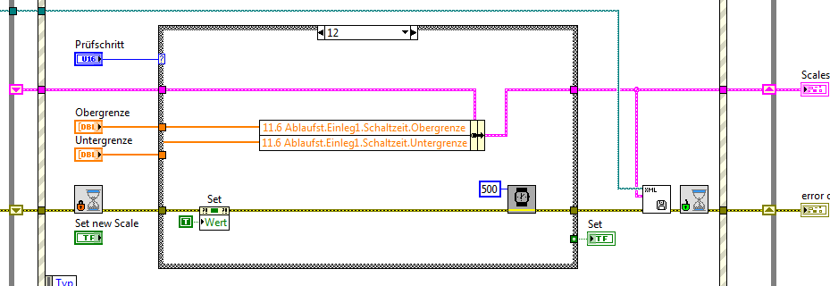 Früher: Wenn sich was an den Grenzwerten ändert muss ich: 1) Die Typedef anpassen 2) die aktuelle zuständige XML-Datei löschen 3) das XML_read.vi mit der aktualisierten Konstanten den Typedef ausstatten 4) die Eingabemaske auktualisieren 5) Programm starten - dabei wird neue XML Datei erstellt
