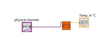 Habe nun die Schleife im sub-VI entfernt und den Inhalt der Schleife im main-VI eingefügt. Nun funktioniert es soweit. Wenn ich jetzt weitere Sensoren hinzufügen möchte, kann ich nicht die Signal-Leitung des ersten Sensors kopieren und einfach den physikalischen Kanal ändern, da der Task ja bereits in Verwendung ist. Meine Frage: Wie kann ich weitere Temperatursensoren hinzufügen. Kann ich beim DAQmx-Lesen mit mehreren Kanälen (array?) arbeiten? Später sollte die Schaltung noch mit mehreren DMS ergänzt weden - dann wird das Ganze mit dieser Variante sehr unübersichtlich.