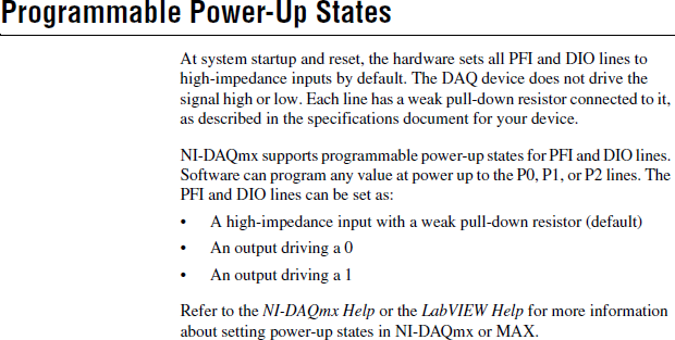 z.B.: bei der NI 6361 kann ich bei den Digital OUT den Status einstellen der ohne Ansteuerung eingenommen werden soll. Bin ich richtig wenn ich vermute das für einen definierten Zustand im stromlosen Status ein Pullup oder Pulldown Widerstand notwendig ist?