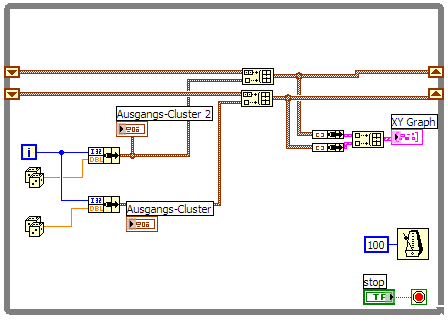Also beide einzeln jeweils mit dem X-Wert gebündelt und dann mittels Schieberegister und der Build Array Funktion in den XY-Graphen. Leider kommt da nur Grütze raus. Kann mir da jemand sagen was ich falsch mache?.