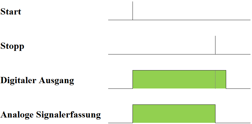 Soweit funktioniert mein Programm auch. Aber leider verstehe ich nicht, warum die Aktivierung der analogen Messerfassung mehrere Sekunden (ca. 7 s) dauert. Leider benötige ich eine kurze Aktivierungszeit (kleiner 0,5 s). Als ich die einzelnen Module (Ditialer Ausgang - Analoge Signalerfassung) getestet habe, war die Performance zufriedenstellend.