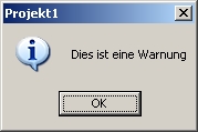in anderen Programmierumgebungen, z.B. MS Visual "irgendwas" kann man sich ganz einfach Hinweis-Symbole auf Dialog-Boxen anzeigen lassen. In VisualBasic ist es mit den optionalen Angaben "vbcritical", "vbinformation", "vbquestion" und "vbexclamation" ganz einfach, sich folgendes anzeigen zu lassen: