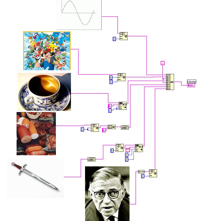 In LabVIEW die "Verdrahtung" erstellen, Screenshot machen, in Paint öffnen und Bilder einfügen. Dann noch als jpg speichern und fertig ist das Rätsel.