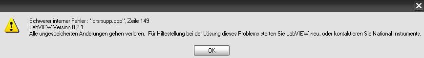 Hintergrund, wieso keine Überraschung: Wie derTetris richtig bemerkt hat, hat das WaveformChart eigentlich keine Cursor-Option (weder über Frontpanel noch über Property Nodes). Zumindest ist das auch in meiner LV-Version so (8.21 FDS). Klar habe ich über Tricks auch die Cursor-Anzeige hinbekommen (erst Waveform-Graph erstellt, dann Cursor-Palette angezeigt, dann ersetzten des FP-Elements durch WaveformChart). Wenn dann aber ein irgendwann Fehler auftritt, sollte man sich halt nicht wundern, weil andersherum (neues Chart->Cluster-Palette erstellen) geht es ja nicht.