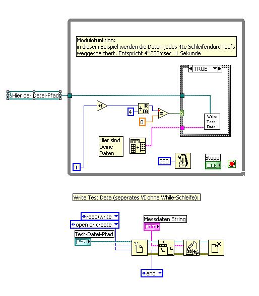 Wollte nur mal sagen, das letzte gepostete VI ist so in dem Zustand wi ich es haben will, nur möchte ich bei dem VI, dass die Anzeigeelemente kontinuierlich aktualisiert werden und die Speicherung und das Diagramm alle n Sekunden.