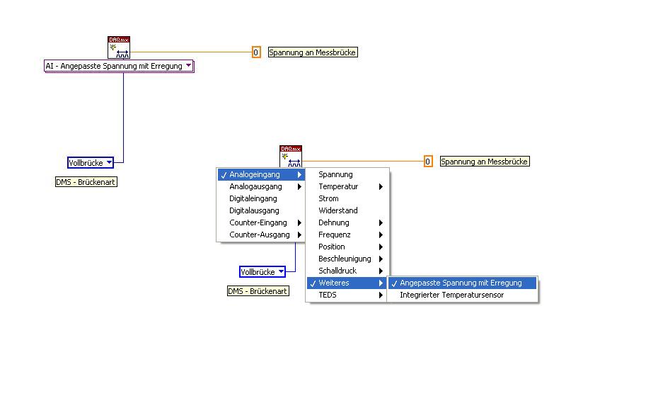 Du kannst hier vorgeben, mit welcher Spg die Messbrücke gespeist wird, und um welche Brückenart es sich hierbei handelt.