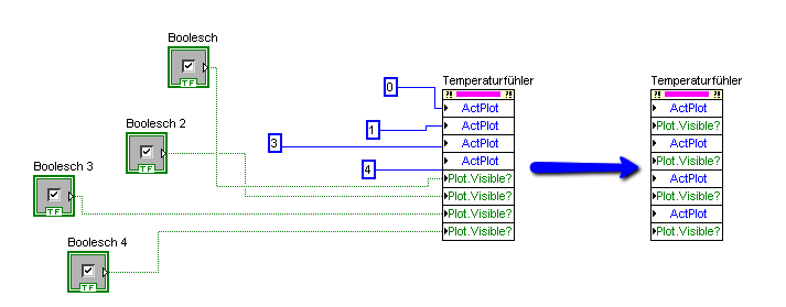 ich hab vor ein paar Wochen angefangen mich in LabView einzuarbeiten und jetzt mein erstes Programm geschrieben. Damit lassen sich alle Messdateien aus einem Ordner laden, fitten und anschließend alles zusammen in einem Graph darstellen. Nun würde ich gerne die Darstellung im Graphen kontrollieren können. Soll heißen, die Messwerte als Punkte, den linearen Fit als Gerade darstellen. Ich hab mir gedacht das es über die Property Node funktionieren müsste. Aber wie kann ich dieser Funktion sagen, welche Plots sie wie darstellen soll?