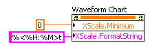 Die zweite Sache die ich mir noch nicht erklären kann ist, wenn ich das Anzeigenformat der X-Achse von Fließkomma auf Relative Zeit HH:MM