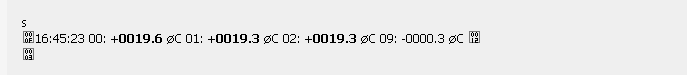 16:45:23 00: +0019.6 øC 01: +0019.3 øC 02: +0019.3 øC 09: -0000.3 øC